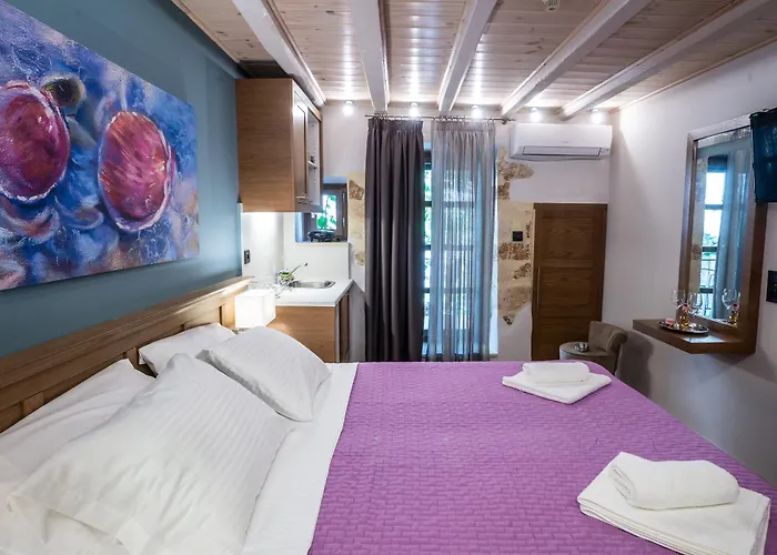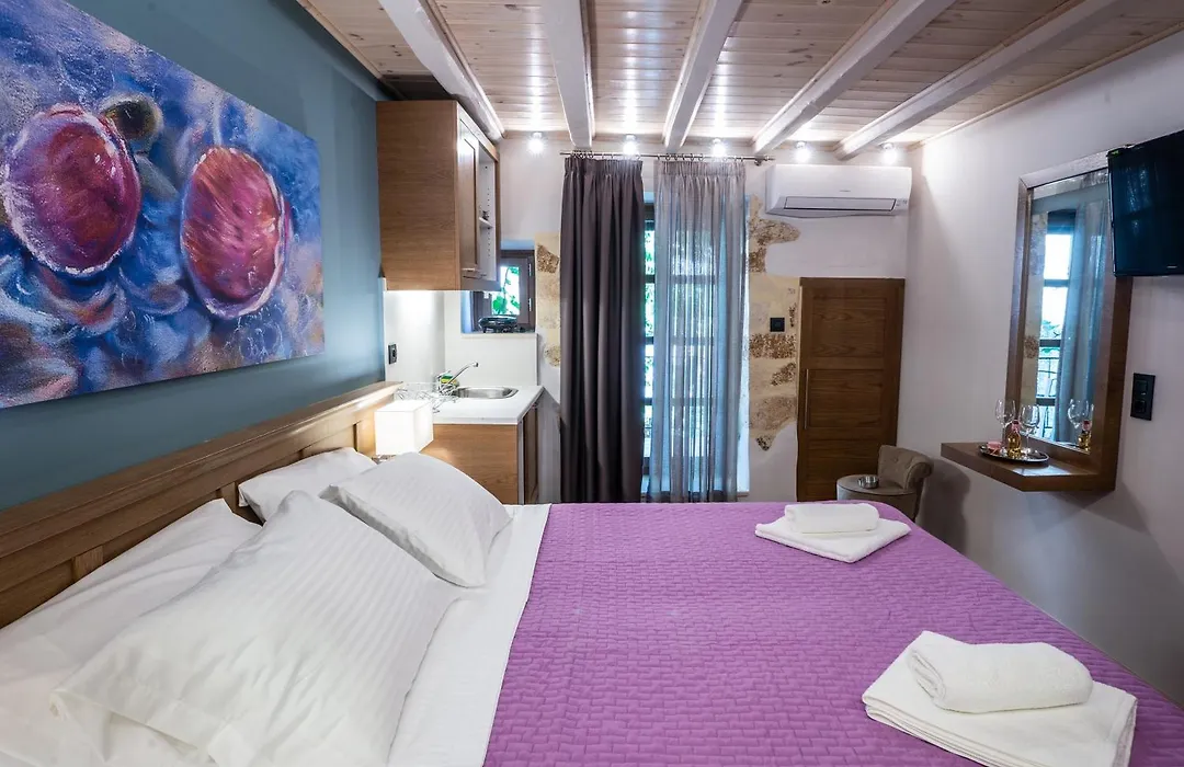تطلّ بعض الغرف في مكان الإقامة في خانيا على البحر وتوفّر نوافذ عازلة للصوت المفروشة بالمكتب للعمل. وتشتمل الحمامات على المرحاض المنفصل والدوش بالإضافة إلى مجفف الشعر وبرانص الحمام لمزيد من الراحة.